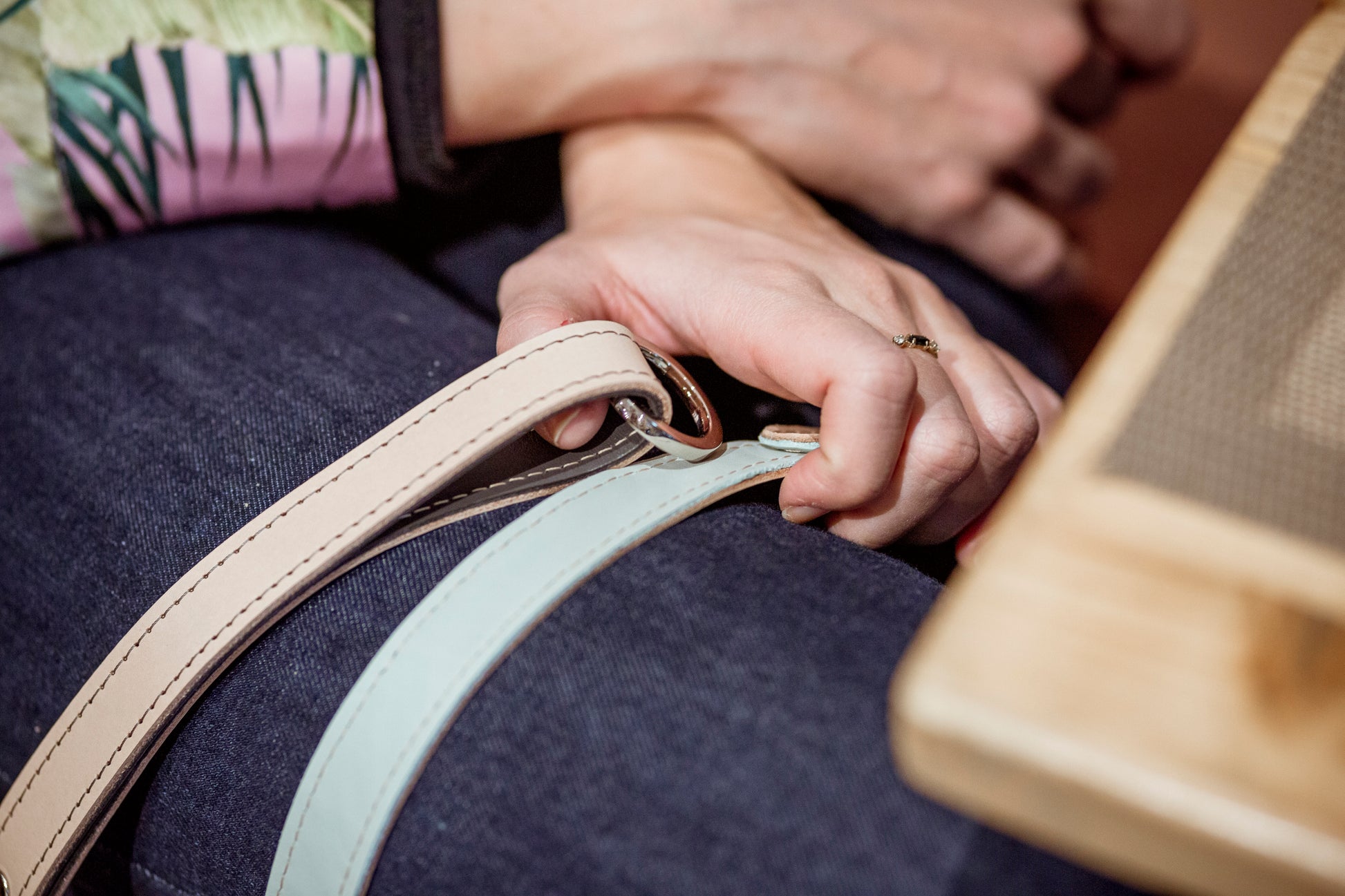 One side is made of a natural vegetable tanned leather, the other side gives the color of your choice. Simple.